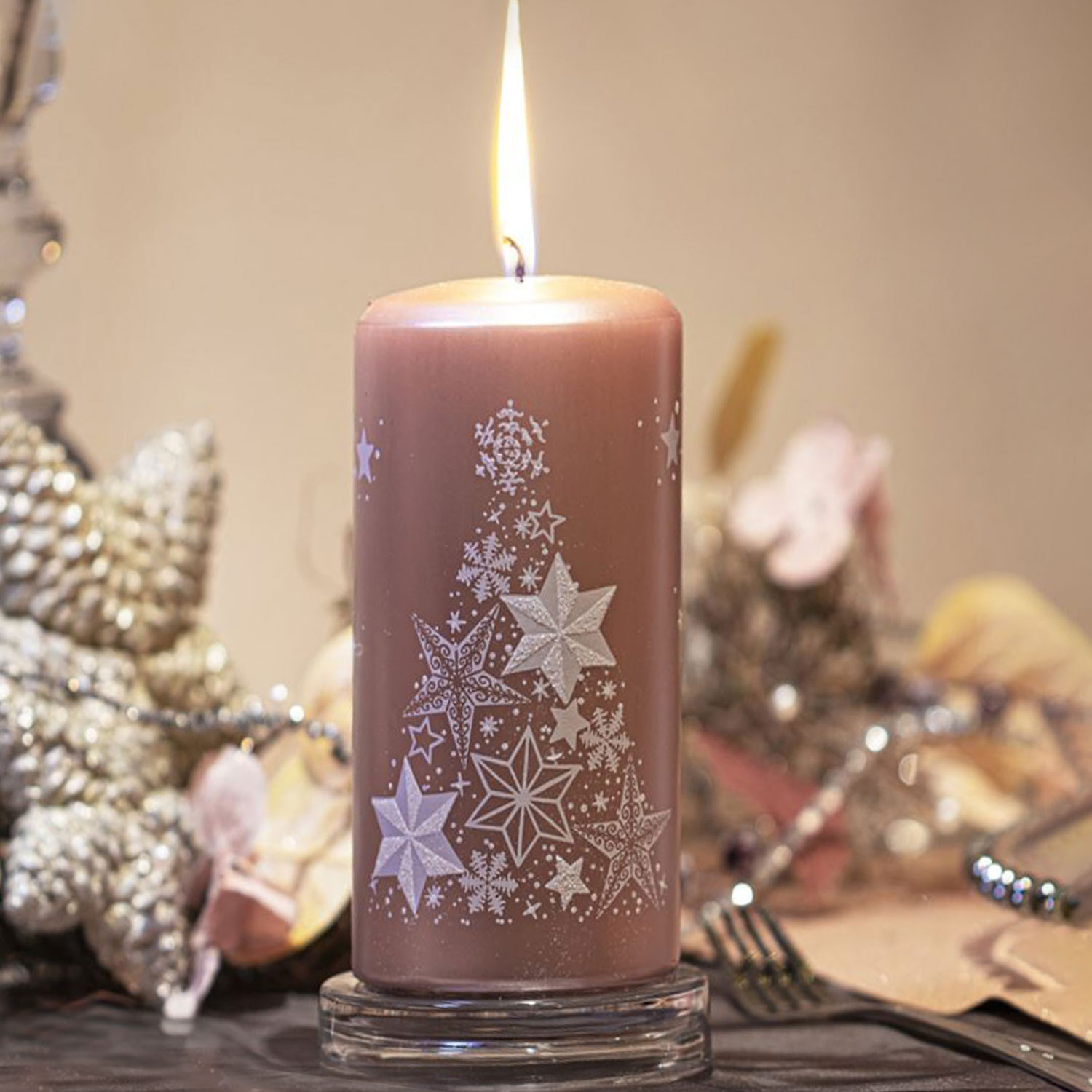 Weihnachtskerze "Sterne" Braun