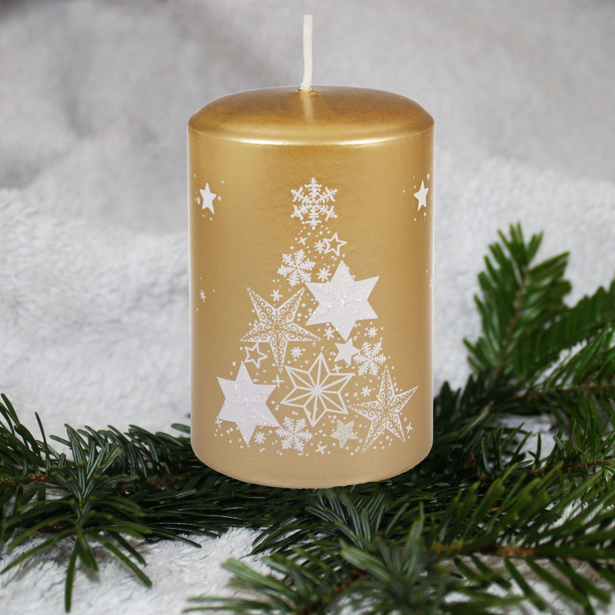 Weihnachtskerze "Sterne" Gold